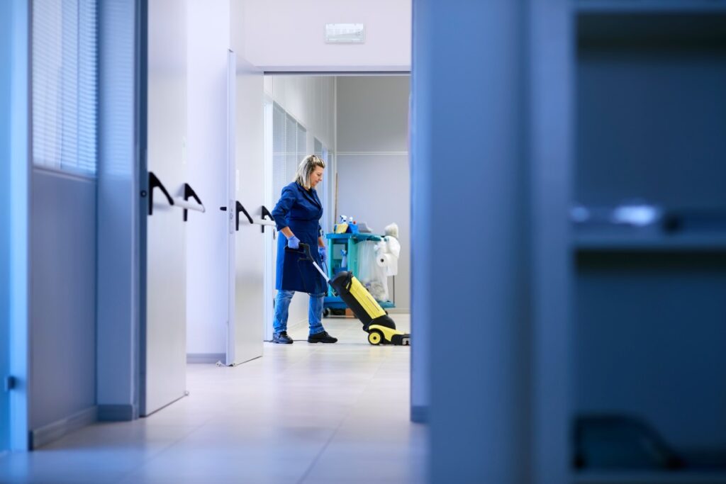 Jobs like vacuuming, sweeping, mopping, wiping down surfaces, dusting, and sanitising are pretty standard, and to be expected everywhere. A cleaner may be in charge of removing any rubbish in the office, cleaning and disinfecting restrooms, and cleaning windows, along with myriad other tasks to be taken care of each and every day.